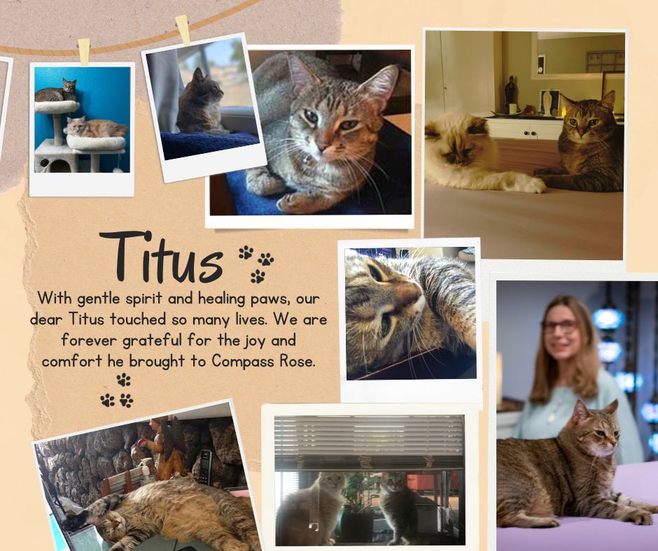 For more than eleven years, Titus was a beloved addition to Compass Rose. His health issues including diabetes and arthritis made it difficult for him to maintain his “cat suit” any longer.